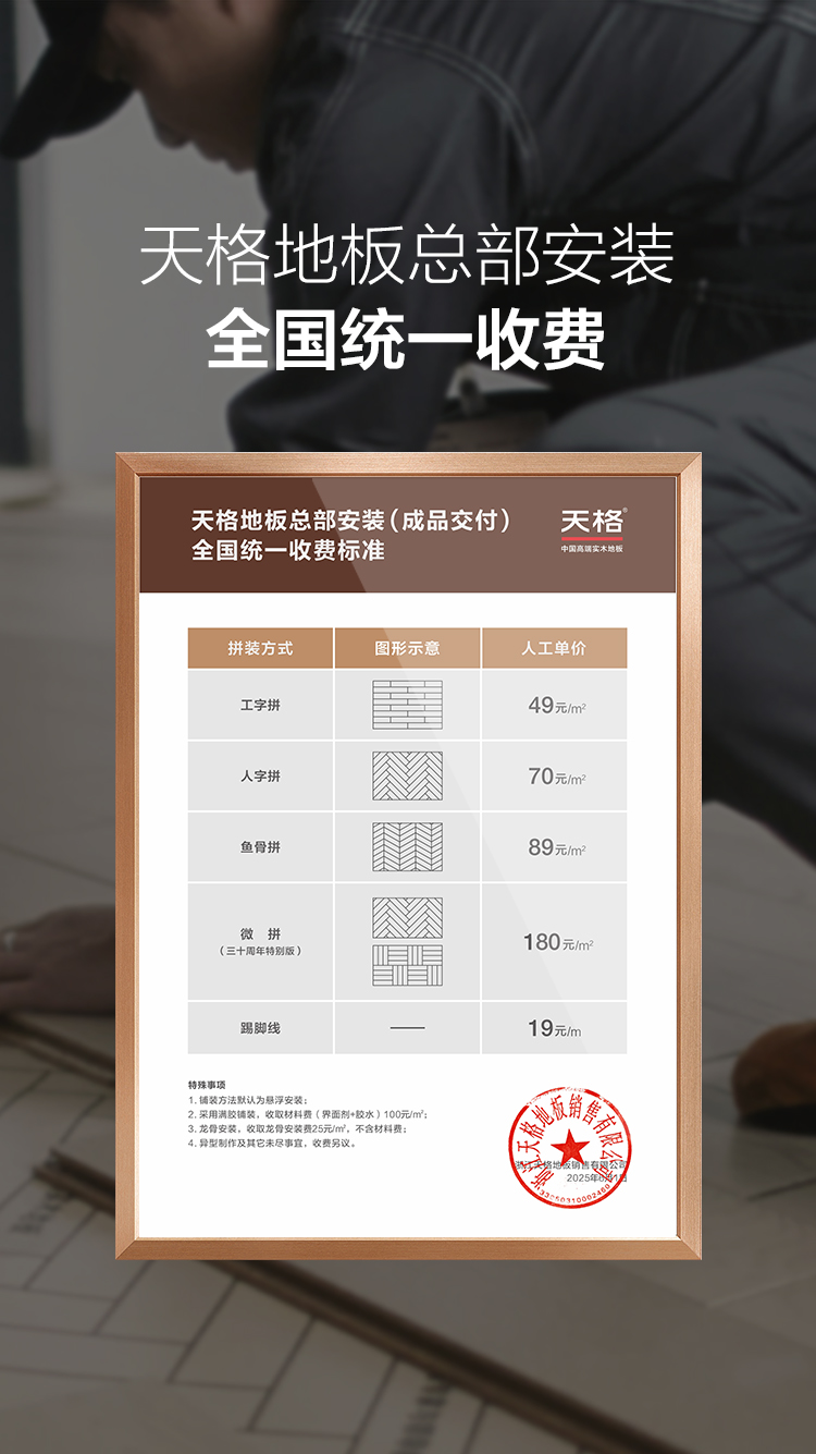 讓服務(wù)價值更客觀|天格地板公布總部安裝全國統(tǒng)一收費標(biāo)準(zhǔn)
